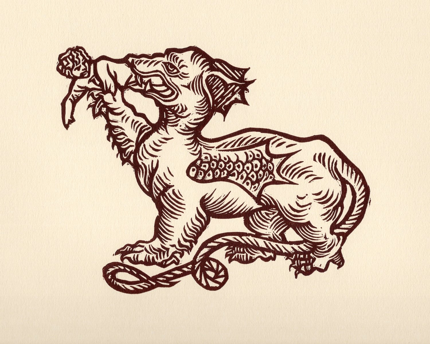Printed with Cranfield traditional relief inks on toned Stonehenge paper. Print size: 8x10 in.